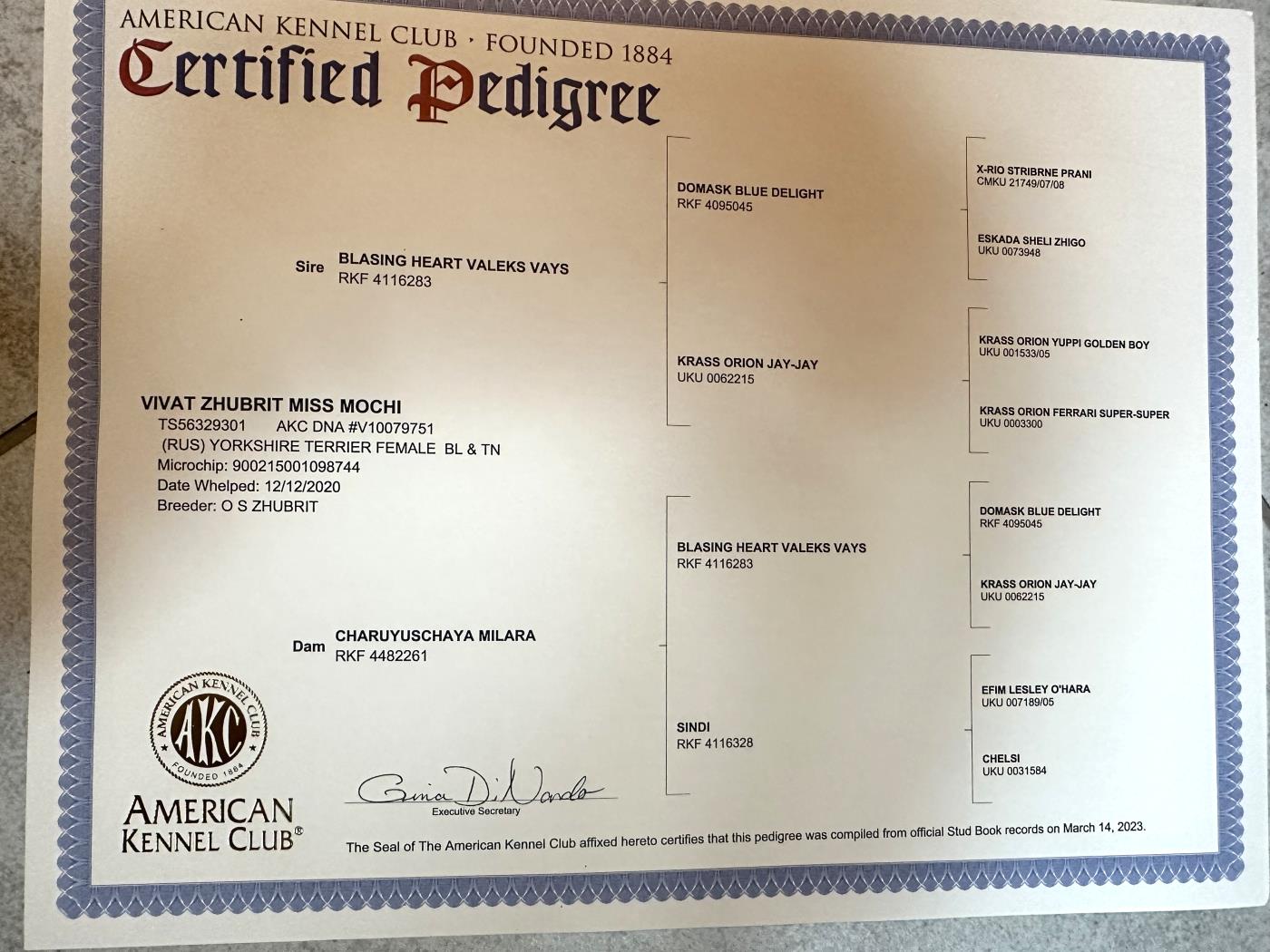 SCARLETT IS SIRED BY “BLASING HEART VALEKS VAYS”. An